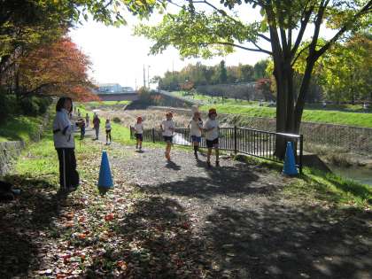 中学年は,小畑川の周回コースを1周半します。子ども達は自分のペースで走り切ろうと真剣に走っていました。