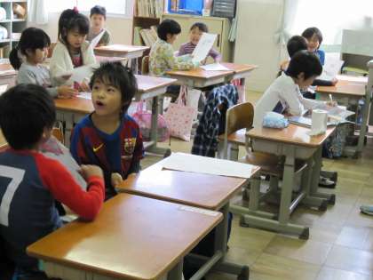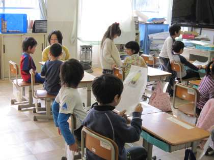 1年生は,国語の学習で「自動車図鑑」をつくりました。この時間は,自分でつくった図鑑を,紹介するお店の店員となって紹介しています。