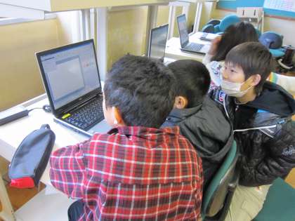 今日は,中間発表に向けてグループごとに,自分達で撮影した画像を取り込見ながらプレゼンテーション作りを行いました。