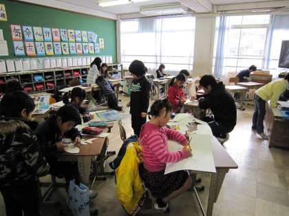 3年生は,図画工作で「紙版画」に取り組んでいます。画用紙などの厚手の紙を形に切って作品をつくっていきます。