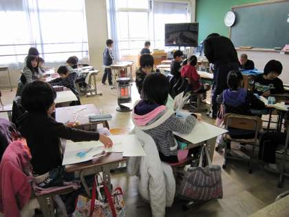 子ども達は,図鑑などを参考にしながら形を切っています。