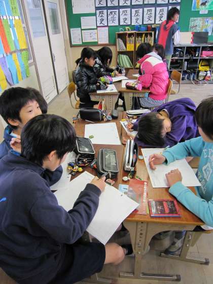 あるグループから「先生,何分間か聞いていてください。」と言われ,確かめると35秒間でした。結果を伝えると,「えっ,そんなに短いの。」と聞き返してきました。中間発表までにどれくらい膨らませるのか楽しみにしています。
