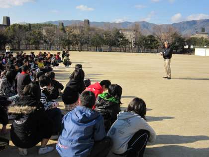 第3回の避難訓練を行いました。この日(1月17日)は,大きな地震が起こったと想定して避難しました。