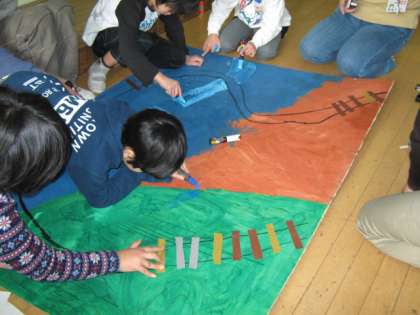 1月26日〜29日に行われる「小さな巨匠展」に出品する共同作品作りに,竹の里小学校へ行きました。