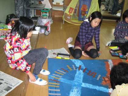 集まったみんなで力を合わせながら作品作りを行いました。