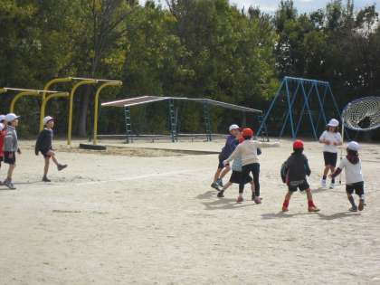 1年生は,体育でパスゲームを楽しみました。ボールを投げたりとったりするのもなれた様子です。