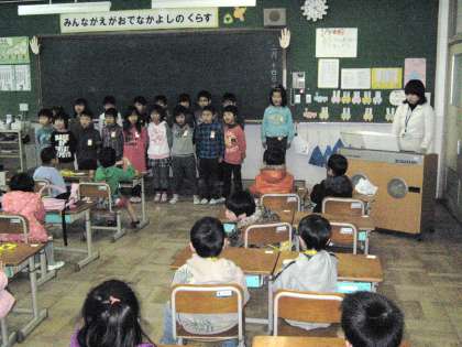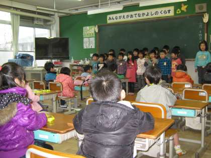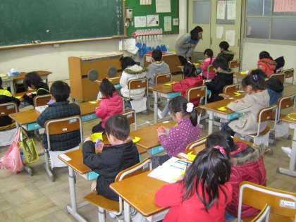 2月14日に,平成24年度入学児童に来てもらって,半日入学を行いました。