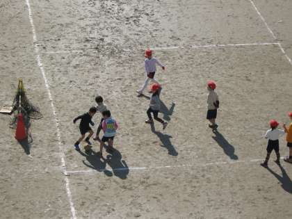 寒い日でしたが,みんな元気にボールをけったり追いかけたりしています。