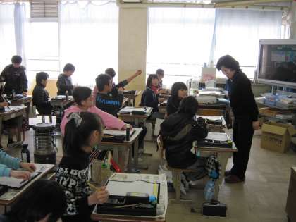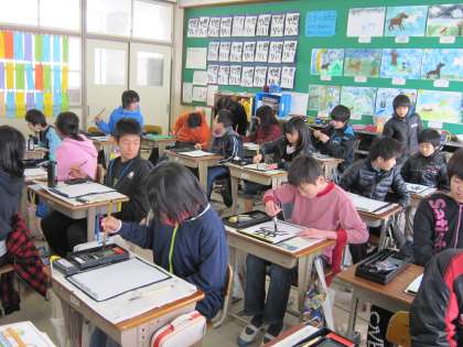 子どもたちは,学校支援ボランティアで来ていただいている地域の方に,アドバイスをもらいながら,真剣に書いていました。