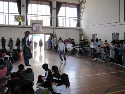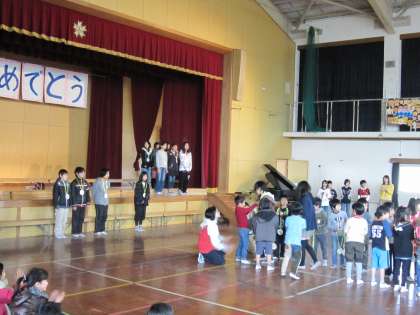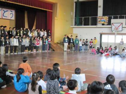 今日(3月8日)の3・4校時に,全校が集まって「6年生を送る会」を行いました。