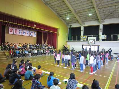 言葉の中にはこれまで集団登校など6年生にお世話になったことに感謝する言葉が入っていました。