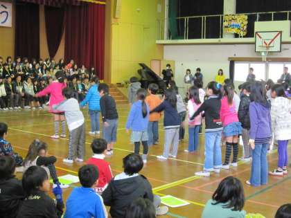 3年生は,6年生を送る会ではじめに応援のエールを行い,歌「ぼくのエール」をふり付きでプレゼントしました。