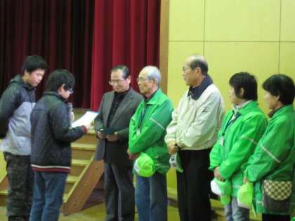 福西安全見守り隊の皆さんは,朝に夕にと子どもたちが安心して安全に登下校できるようにと見守ってくださっています。子どもたちもよく知っていて,朝会うと「おはようございます。」と元気にあいさつしています。この日は,代表委員がみんなを代表して感謝の言葉と感謝状を贈りました。