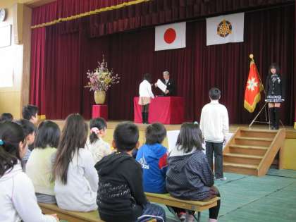 門出の言葉では,おうちや地域の方への感謝の気持ちを伝え,5年生には自分たちの後を託す言葉を伝えました。