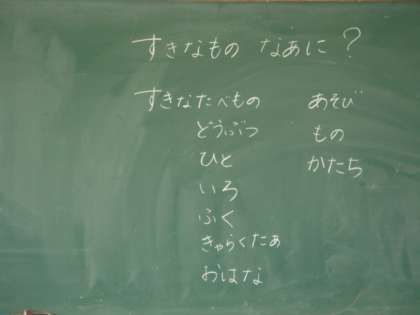 朝、上級生に下駄箱まで連れ来てもらい、上靴に履き替えて教室に上がって行きました。今日は図工の授業がありました。自分の好きな○○を画用紙いっぱいに描くことができました。