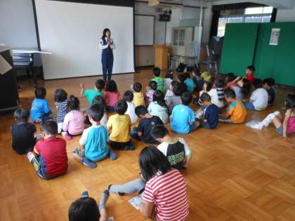 2年生はプレイルームでビデオを見て学習しました。警察の方からの話をしっかりと聞くことができました。安全に気をつけて自転車に乗ってほしいと思います。