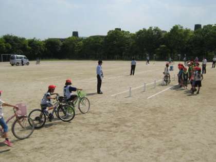 今年の4年生は,自転車免許講習に挑戦しました。午前中に学科試験を行い,午後から実際に自転車に乗っての試験がありました。学科も実技も難しかったけど,一生懸命に取り組むことができました。後日,自転車免許が発行されるのを,みんな楽しみにしています。
