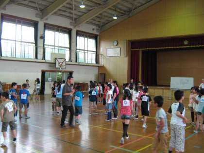 今日の2時間目に,竹の里小学校の5年生と山の家の事前交流会を行いました。はじめに自己紹介をした後,背中に張った動物をあてるゲームをして交流を深めました。山の家が楽しみです。