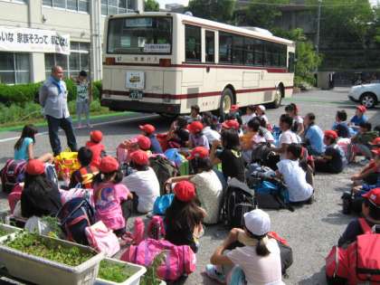 今日から5年生は,4泊5日で花背山の家に出発しました。出発式では元気な挨拶が響いていました。山の家での活動が楽しみです。