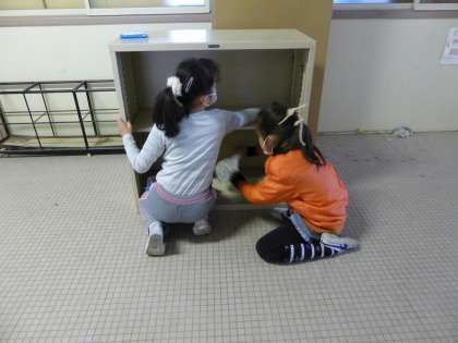 廊下に置いてあるロッカーにほこりがたまっていたので,4年生の児童がボランティアで拭き掃除をしてくれました。拭き終わった後のロッカーは,ピカピカになりました。