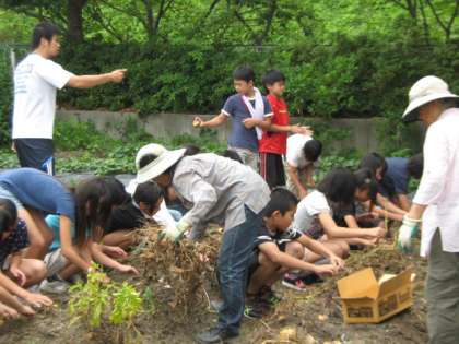 6年生は理科の観察・実験で扱った農園のジャガイモの収穫をしました。1組・2組に分かれて収穫しました。少年補導の方が無農薬・有機栽培で育てた自慢のジャガイモです。さっそく,家庭科の調理実習でいただきました。おいしかったです。今年も福西のふれあい夏祭りで販売する予定です。