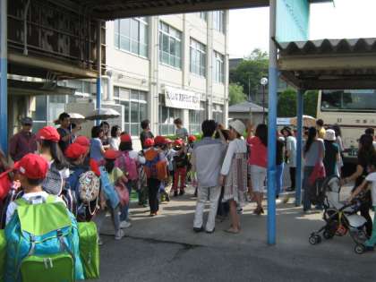 梅雨の季節にしては、絶好の天気に恵まれ、出発しました。これから、四泊五日の長期宿泊体験学習です。