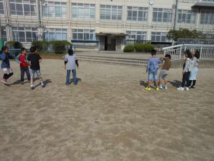 国語の教科書にのっている「ちいちゃんのかげおくり」にあったかげおくり遊びを体験してみました。空に自分の影が映るのがとても不思議で,楽しく遊んでいました。