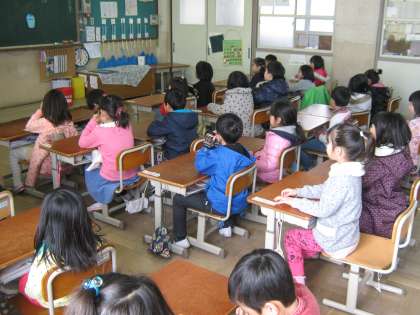 先生の話を,真剣に聞いていました。お話の中に出てきた登場人物の気持ちや,様子を自分のことのように考えていました。