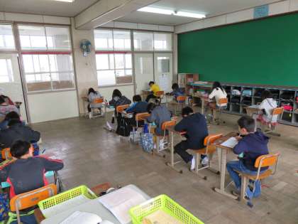 教室で学級開きをした後に,福西漢字大会に取り組みました。4年生で学習した漢字のテストをしました。「覚えてない」と苦戦している子もいたようですが,静かに集中して取り組むことができました。