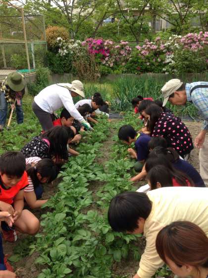 それが大きく育ち,土の中でジャガイモ同士が邪魔をしあわないよう芽引きをしました。みんなしっかりとお話をきいて丁寧に行うことができました。