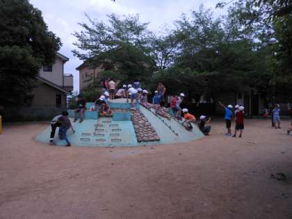 向日神社の裏手にある勝山公園では,お弁当を食べました。また,食べ終わったグループからなかよく遊びました。遊具もあり,なかよく楽しくあそんでいました。