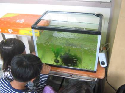 学習後「理科室,また行ってみたいな!」「児童会室にドラえもんがいたー!」など様々な意見や感想,発見したものを口々に言っていました。