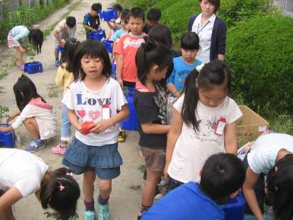 生活科でミニトマトを植えました。1年生の時につかっていたアサガオ用の鉢に新しい土を入れました。丁寧に土をかぶせ,自分のミニトマトを育てていく準備をしました。