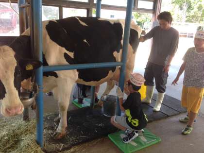 そっと手を伸ばし,ぎゅっと握ると牛乳が出てきました。