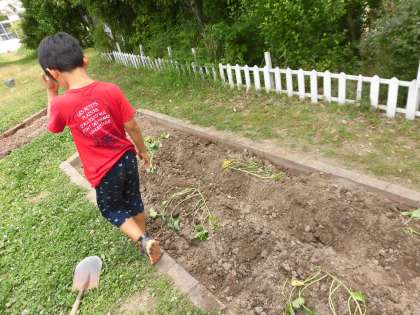 サツマイモの苗を植えました。これでジャガイモ,落花生,サツマイモとつくし畑はにぎやかになりました。これに加えてミニトマトとアサガオは運動場側に並んでいます。これからの観察が楽しみです。