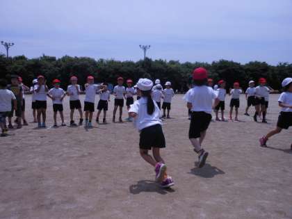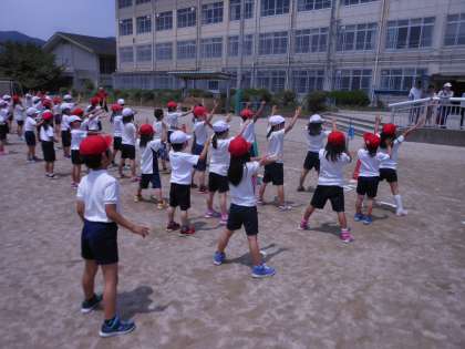 遠足でたてわり活動をして,なかよくなった123学年のグループでミニ運動会を行いました。ダンスや折り返しリレー,借り物競争をして仲良く協力して楽しむことができました。