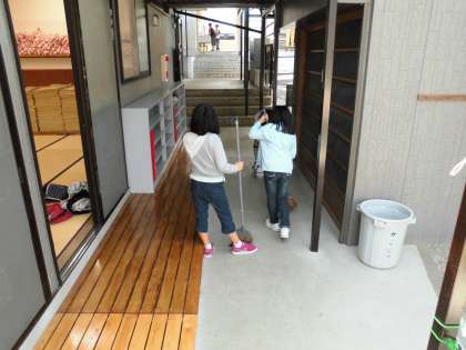 三日間お世話になったみさきの家,「来たときよりも美しく!」して次の学校に使ってもらうために,一生懸命掃除をしました。