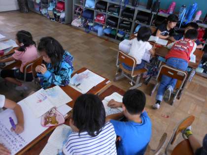 国語科「スイミー」の学習をしています。音読の宿題にもなっていますが,グループのみんなでスイミーのお話について,もっと知りたいことや,わからないことについて話し合いました。その後グループで話し合ったことを,全体で発表しました。「スイミーが一ぴきだけ黒いのはなぜだろう」や「お話の続きを考えたい」などたくさんの意見が出ていました。
