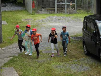 午後からの最初の活動は、「スコアオリエンテーリング」です。コース図をたよりに山の家の所内を巡ります。各ポイントには山の家に関わる問題があり、それを解かなければなりません。中には、かなりの難問もあります。さらに、制限時間もあります。
