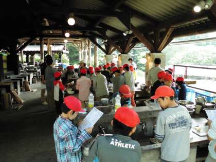 オリエンテーリングの後は、野外炊事です。今回はカレーライスを作ります。「おかず係」「ご飯係」「火の係」の分担でそれぞれ頑張りました。