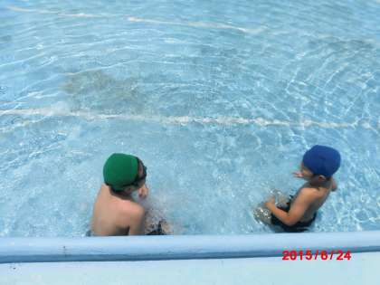 つくし学級では低学年と一緒に今年初めての「水あそび」をしました。ワニ歩き・カエル歩き・カニ歩きのお手本に選ばれた4年生は格好良かったです。
