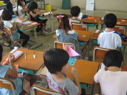 1年生は図工の時間に七夕のかざりをつくりました。