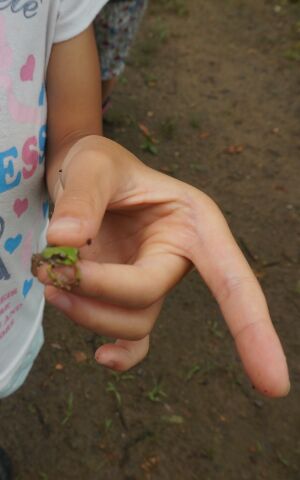 あいにくの雨でしたが、そのおかげでかわいいアマガエルが芝生にいっぱい♪