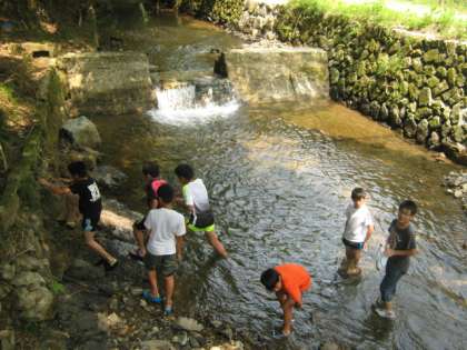 お昼からは雑木林でカブトムシやクワガタなどの昆虫を探す「森グループ」、清流に棲むサワガニや水生昆虫などを探す「川グループ」、清流に棲む魚たちを探す「釣りグループ」の3つに分かれて活動しました。