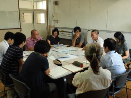 子どもたちが学び合う姿をめざした授業を展開するための条件等について,グループに分かれてて討議しました。