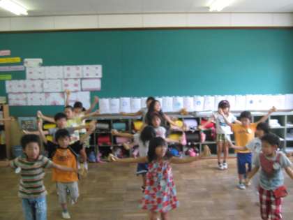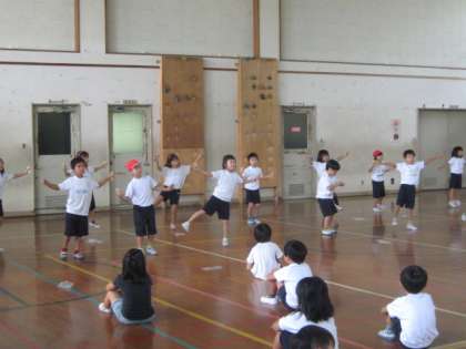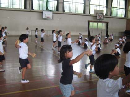 1年生は運動会の集団演技にむけて2年生と共に「ふくにしちゃーびらさい」を頑張って練習しています。