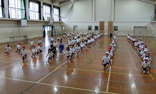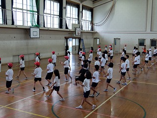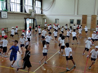 今年の運動会の3,4年生の団体演技は「エイサー」です。夏休み明けから各クラスで練習をしてきたのですが,今日初めて体育館に集まり,合同練習をしました。運動会に笑顔で「エイサー」が発表できるよう練習を頑張ります。