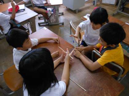 今日は栄養教諭の薄刃先生に来て頂き、正しいお箸の持ち方を教えてもらいました。
