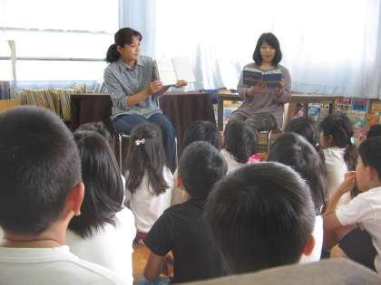 今日は9月のお話宝石箱の日でした。2年生はいつもどおり3校時に読み聞かせをしていただきました。