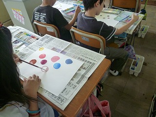 きれいな色ができるたびに,「わ!きれい。」「あの部分にこの色を使おう。」などの声が聞かれました。